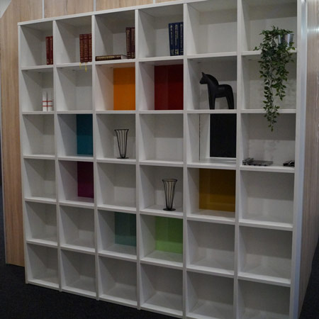 Bookcase with colourglass
